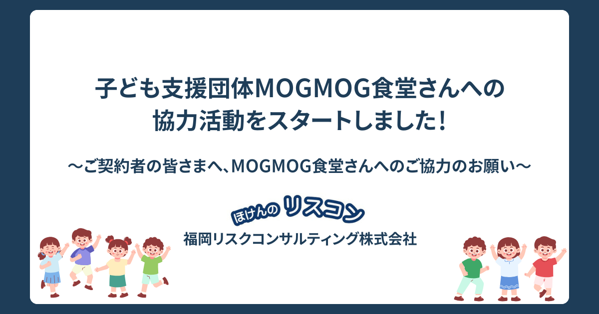 福岡リスクコンサルティングでは、地域社会への貢献活動の一環として、一般社団法人MOGMOG食堂さんの取り組みに協力することとなりました。