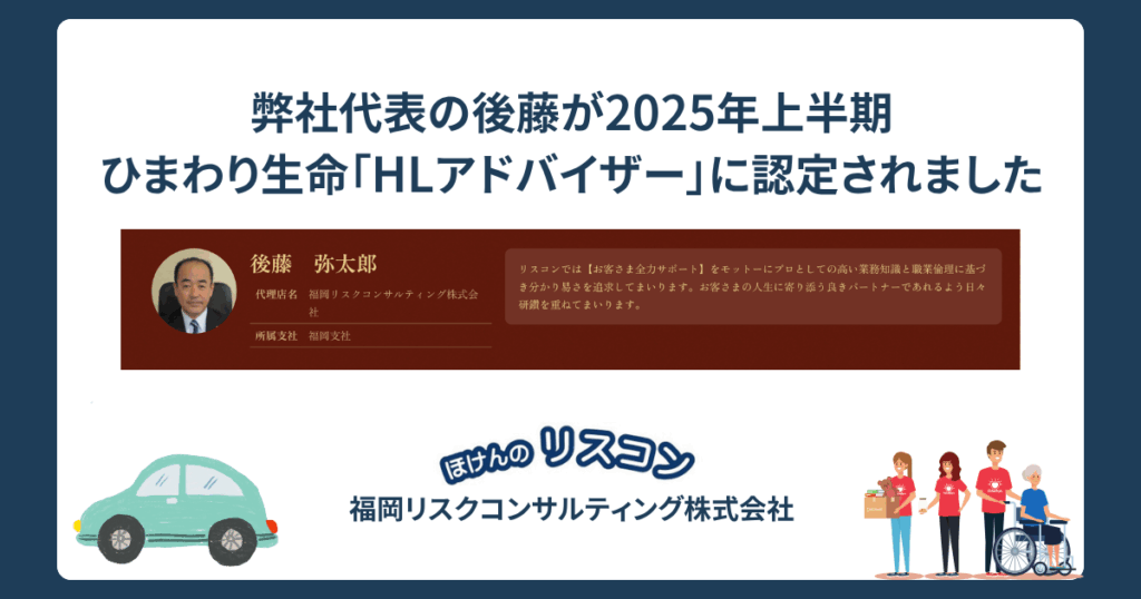 弊社代表の後藤が2025年上半期ひまわり生命「HLアドバイザー」に認定されました