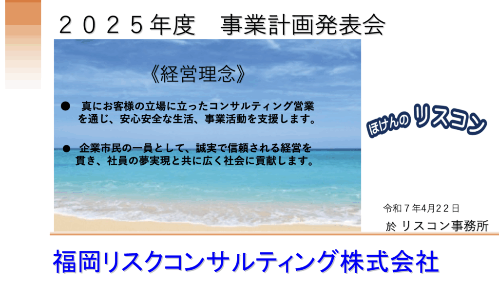 令和7年4月22日、 令和7年度 事業計画発表会を開催しました。 2024年の振り返りから2025年の目標の確認などを本会では実施しており、社員全員の参加はもちろん、取引保険会社の方々もお招きしています。本会でも発表されました、詳細となる「お客様の声...